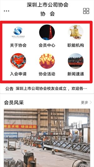 3、在协会主页中可浏览各类功能入口,包括协会介绍、会员中心、职能机构、入会申请等服务。