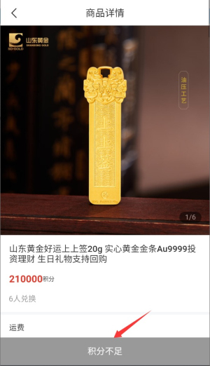 4、在商品详情页点击"积分兑换"按钮,确认后即可使用积分获取商品。