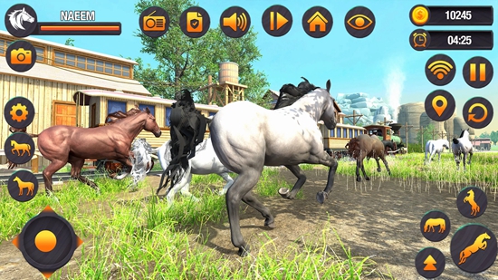 虚拟野马家庭模拟器手机版英文名为Virtual Wild Horse Family Sim,这是一款模拟经营类游戏,玩家需要扮演一名牧场主,管理自己的马场,照顾好自己的马匹和家庭成员,免费下载安装吧!