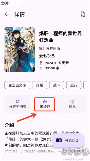 6、如需要缓存作品内容以便离线阅读,可在详情页点击"未缓存"按钮。