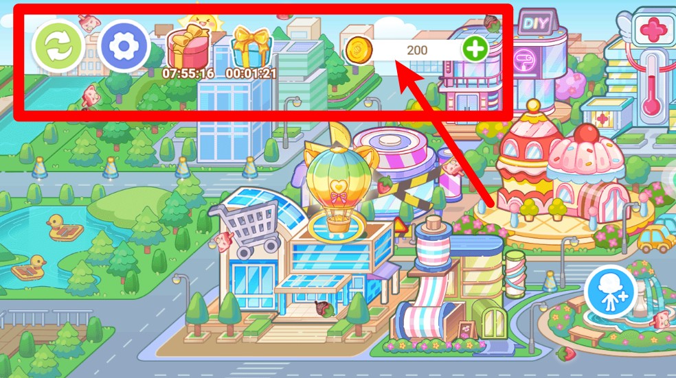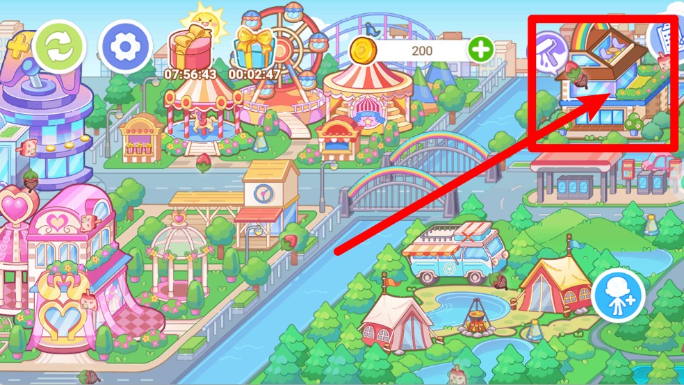 1.小镇界面:玩家可以在小镇中自由探索,金币和奖励随时领取,为后续派对布置与换装提供丰富的资源支持。