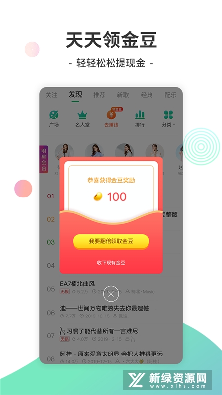 Y2002电音听歌赚钱版是一款专为喜欢听dj电音的小伙伴们打造的一个应用软件,在这里你可以找到更多志趣相投的小伙伴,在线收听下载自己喜欢的电音舞曲,还能无限刷金豆,换取现金奖励哟!