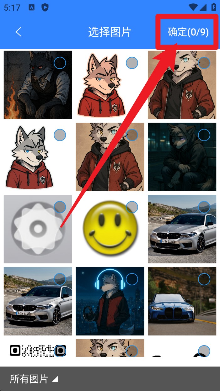 4. 在图片选择界面中勾选要导入的图片,点击右上角的 “确定” 完成导入操作。