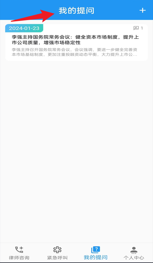 5、在“我的提问”页面,可查看和管理自己提交的所有法律问题。