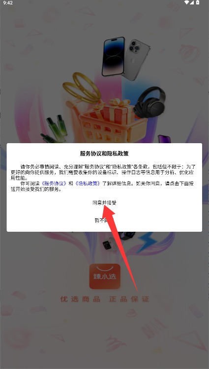 1、初次使用需阅读平台服务条款与隐私政策,确认后点击同意按钮进入登录界面。