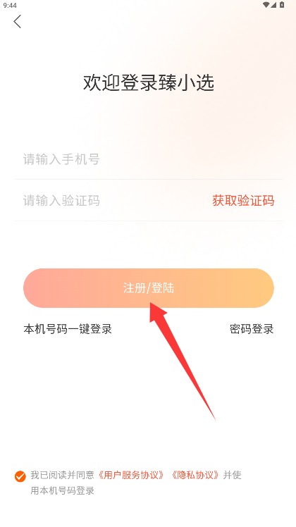 2、在登录页面输入用户名或手机号及登录密码,确认无误后点击注册/登录进入应用。