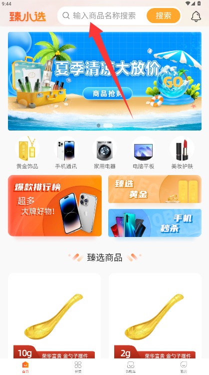 3、在首页商城顶部搜索栏输入商品名称或相关关键词,搜索需要的商品进行浏览。