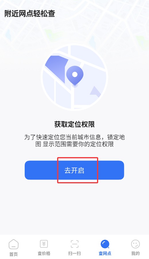 4、进入网点查询页面,开启定位后可自动显示当前城市的全部服务网点信息。