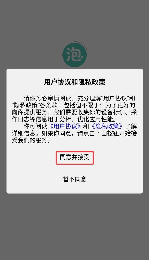 1、首次启动应用时,请点击弹窗中的“同意”选项,方可进入主界面开始使用。