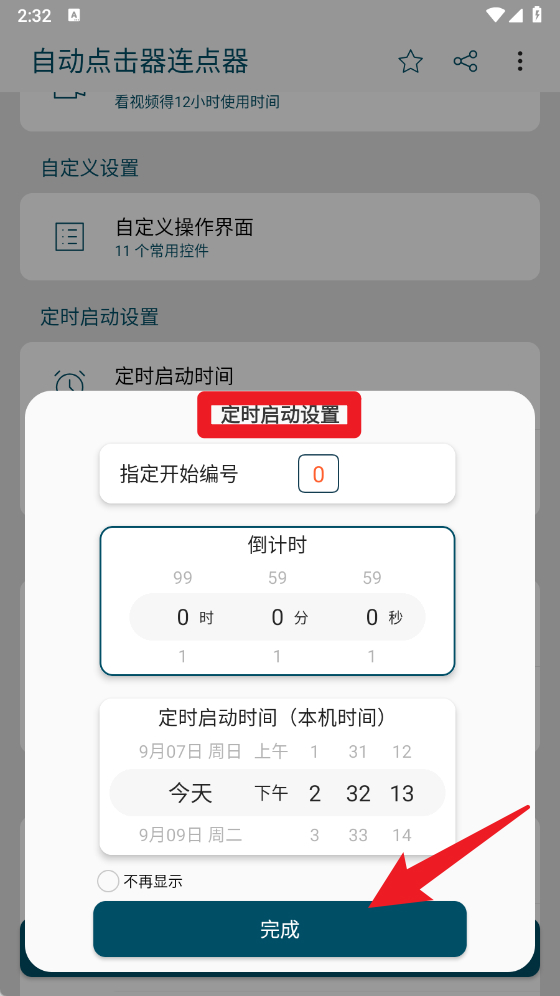 4、通过【定时启动设置】,可设定指定时间自动执行点击任务。