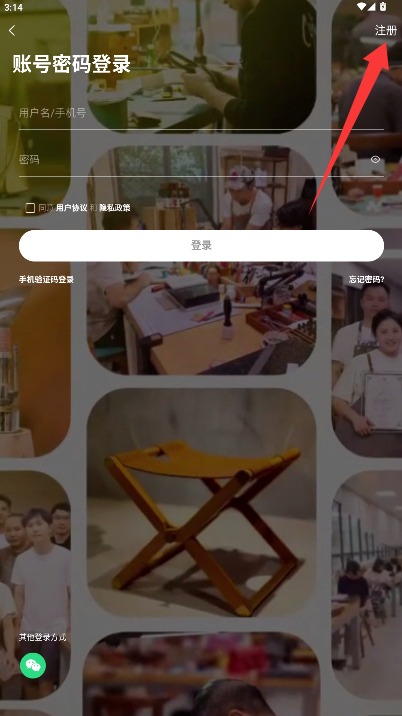 2、在登录页面点击右上角的注册按钮,进入新用户账号创建信息填写页面流程。