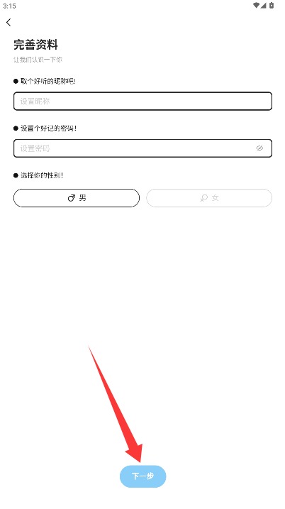 4、设置呢称和登录密码,选择性别等相关信息后完成注册账号进入使用即可。
