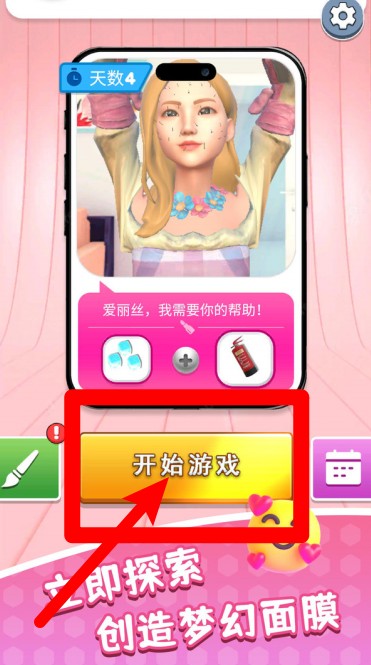 1.点击开始游戏即可进入关卡,帮助角色解决皮肤难题,体验沉浸式美妆模拟玩法,充满乐趣。