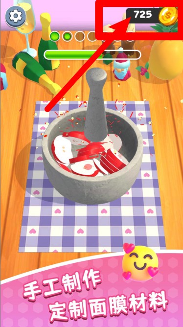 2.屏幕右上角显示金币数量,玩家可通过完成任务获得奖励,用于解锁更多美容材料和精美装饰。