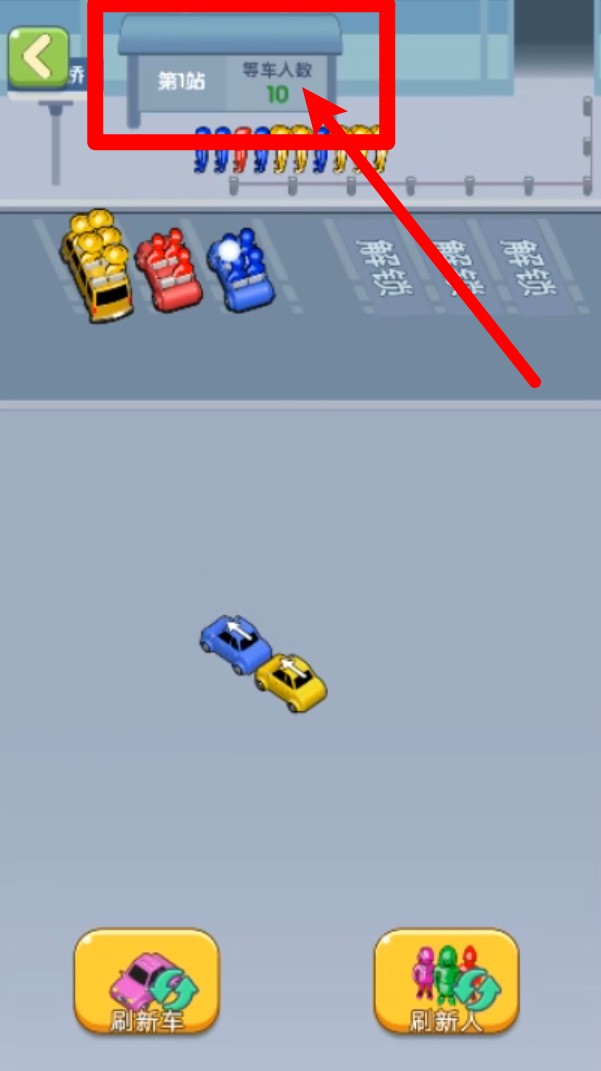 1.随着关卡难度增加,乘客数量也会变多,可以点击"刷新车"和"刷新人"按钮灵活调整,保证乘客顺利上车。