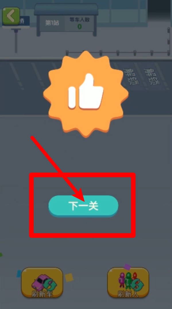 3.点击"下一关"按钮即可进入新的挑战关卡,继续完成更加有趣的乘客安排任务,体验不断升级的车站管理乐趣。