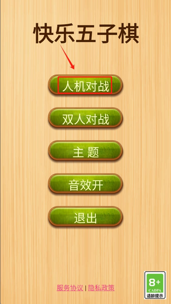 1、在主菜单中选择“人机对战”模式,开始你的五子棋游戏。