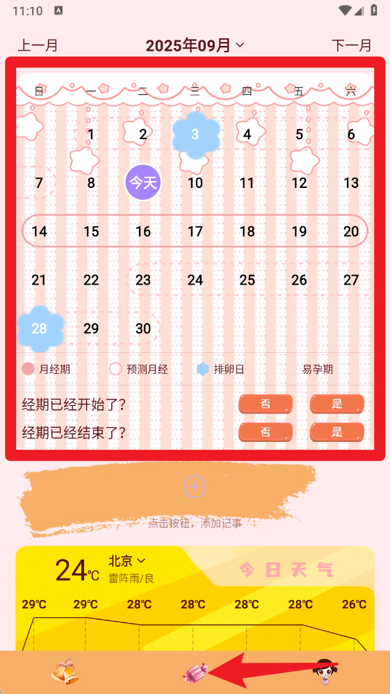 姨妈月经期管家是一款贴心的女性健康管理软件,专注于帮助用户科学记录和追踪生理周期,它通过智能计算与精准预测,让用户更好地掌握排卵期与月经期的规律,提前做好准备,避免生活中的小尴尬,软件还提供健康、体重、心情等多维度记录功能,关爱健康每一天。
