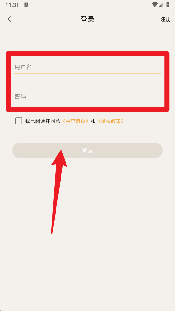 2、在【登录】界面输入用户名和密码即可登录,若无账号可点击注册。
