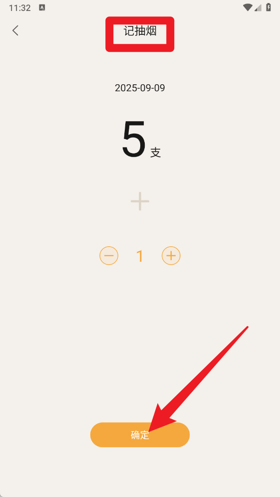 5、点击【记抽烟】,选择日期和抽烟支数,点击“确定”即可完成记录,系统将自动更新统计。