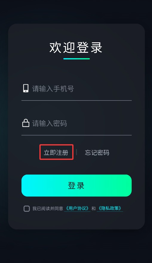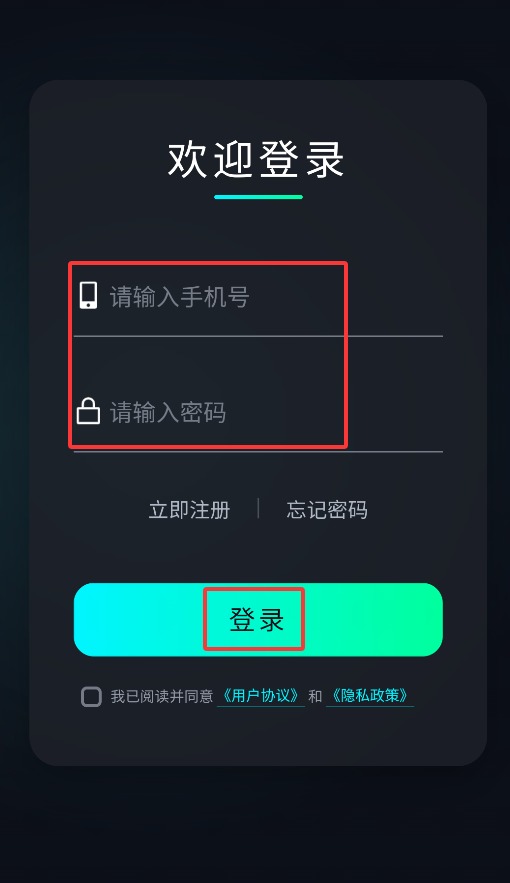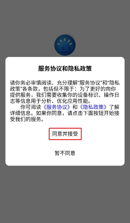 1、首次启动APP时需点击同意用户协议弹窗,方可进入登录主界面。