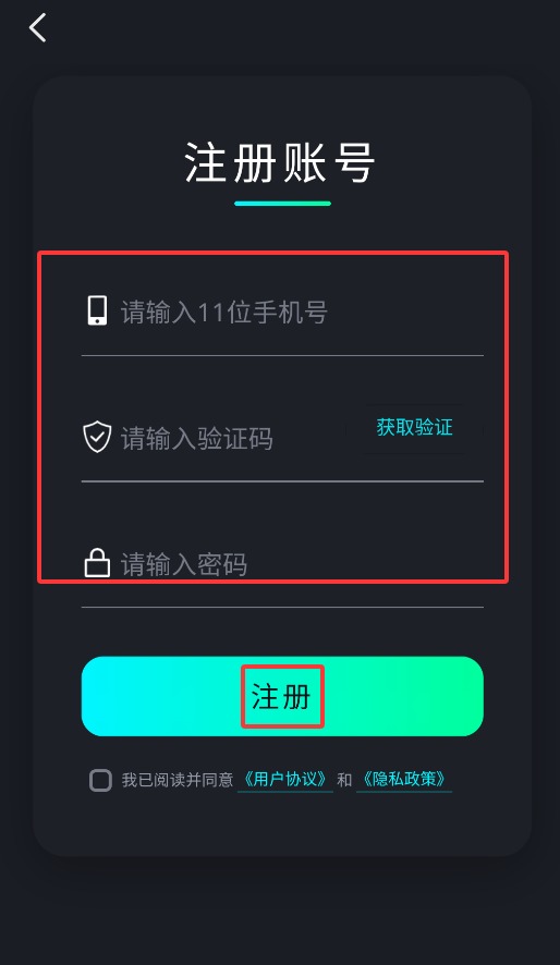 3、注册需输入手机号码、获取验证码并设置登录密码,确认后即可完成注册。
