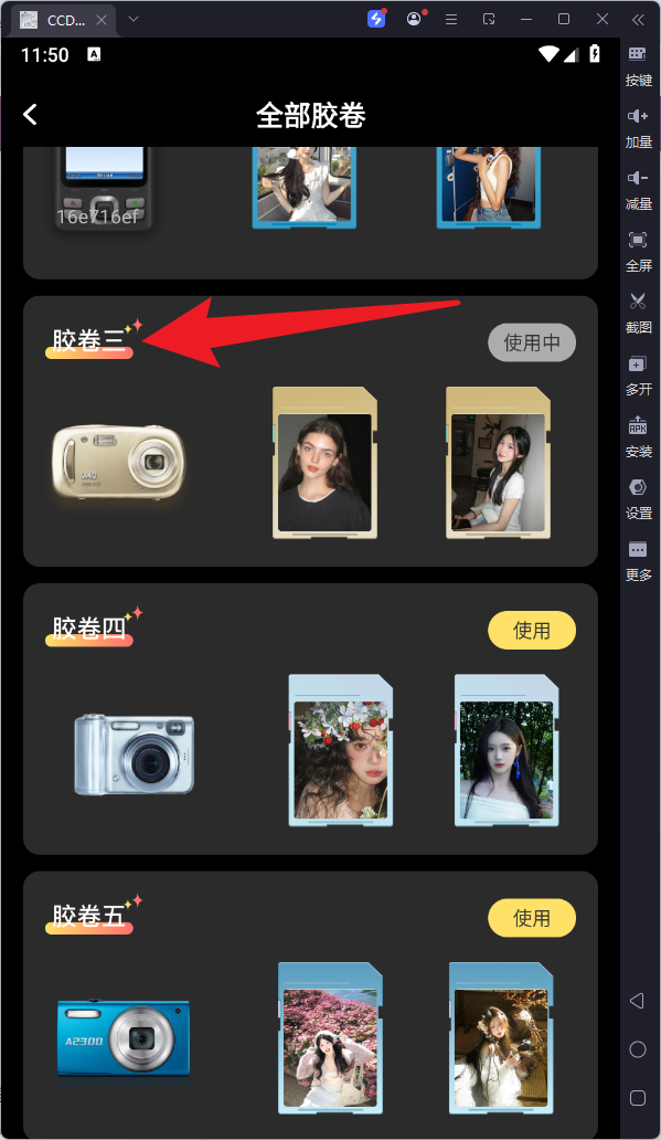 3、在【全部胶卷】中,可以自由选择不同胶卷效果,切换使用后照片将自动套用所选滤镜。