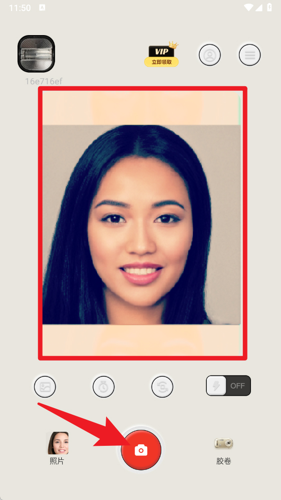 2、进入拍摄界面,可以使用相机实时取景,点击快门即可拍摄照片,体验复古胶卷质感。