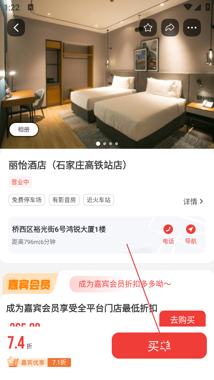 2、在住宿商家列表中,选择心仪的酒店,如丽怡酒店,点击进入酒店详情页。