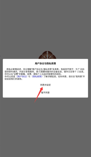 1、初次启动应用时,需阅读并同意用户服务协议及隐私条款,点击确认后进入主界面。