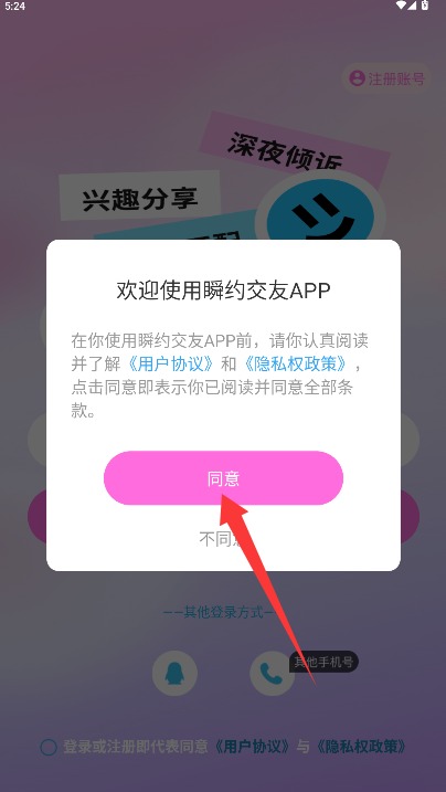 1、初次使用需阅读用户协议与隐私政策,确认无误后点击同意按钮进入登录界面。