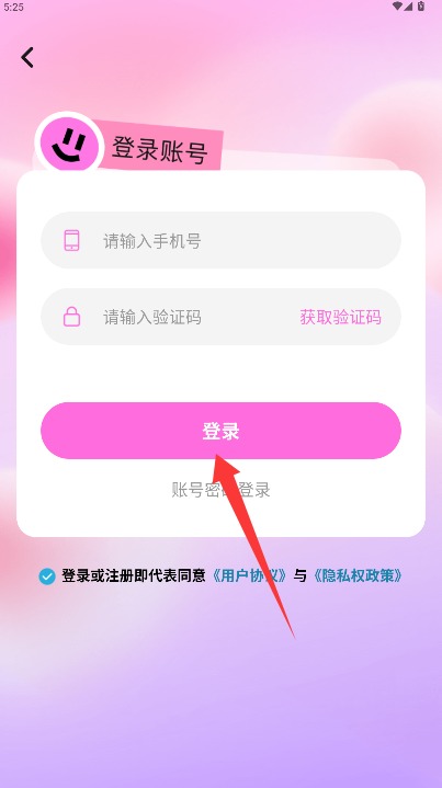2、在登录界面输入手机号和短信验证码,勾选同意相关协议后点击登录按钮进入。