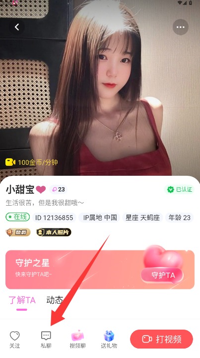 4、进入用户资料页面查看详细信息,点击私信功能即可与该用户进行交友聊天。