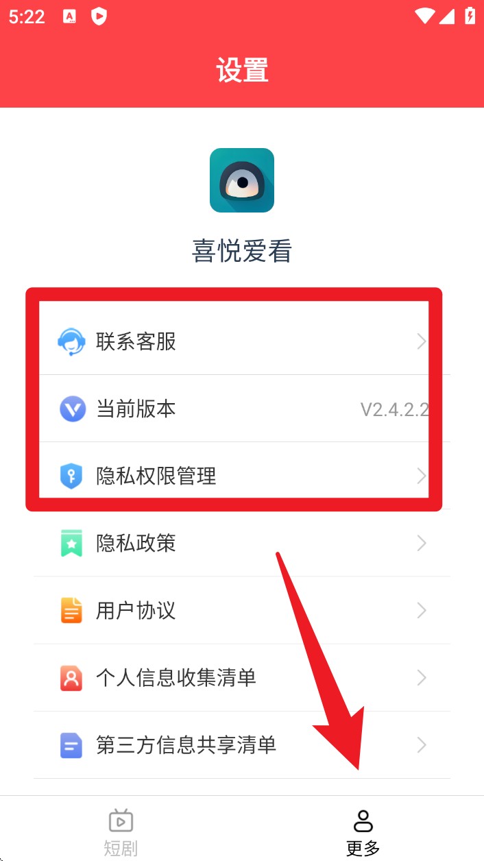 3. 进入「更多」设置中心,可联系客服、查看当前版本,也能管理隐私权限,保障使用过程安心无忧。