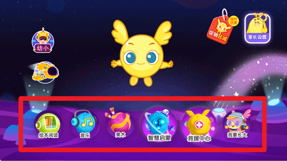 2、在【首页】界面,可选择绘本阅读、音乐、美术、智慧启蒙等模块,帮助孩子多维度学习成长。