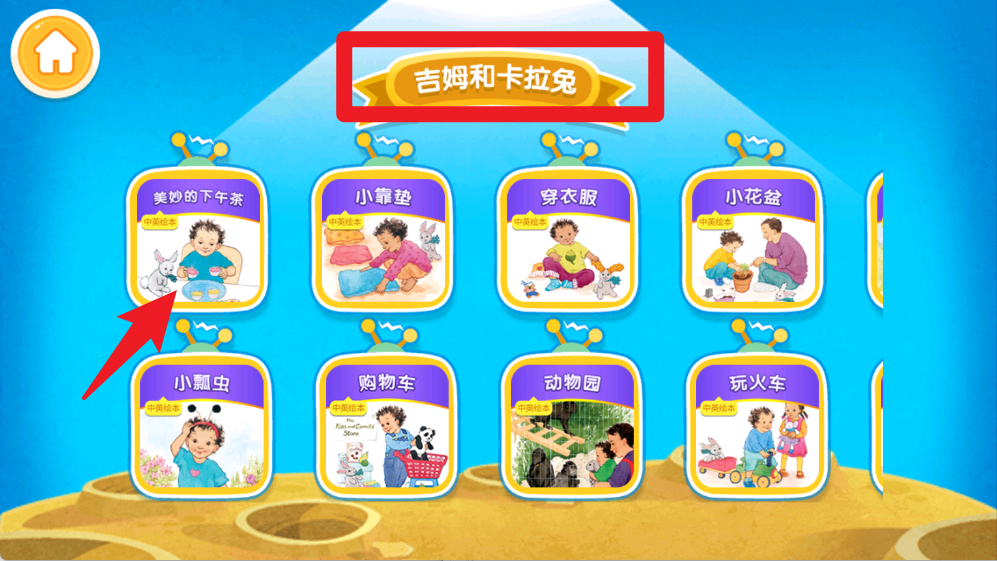 4、点击绘本故事,如【吉姆和卡拉兔】,可以选择不同章节阅读,图文并茂,寓教于乐。