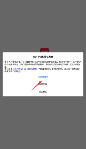 1、初次启动应用时,需阅读并同意用户服务协议及隐私条款,点击确认后进入主界面。