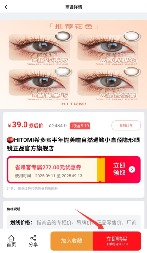 3、领取优惠券后可直接跳转至对应平台,自动兑换使用,享受折扣优惠,完成购物流程,查看节省金额。