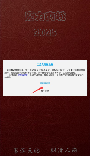 1、初次启动应用时,需阅读并同意用户服务协议及隐私条款,点击确认后进入主界面。