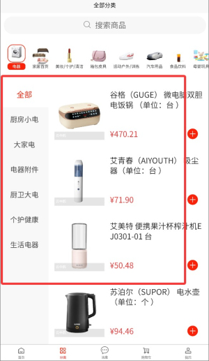 2、在主页面选择"分类"功能入口,浏览各类商品的详细分类列表。