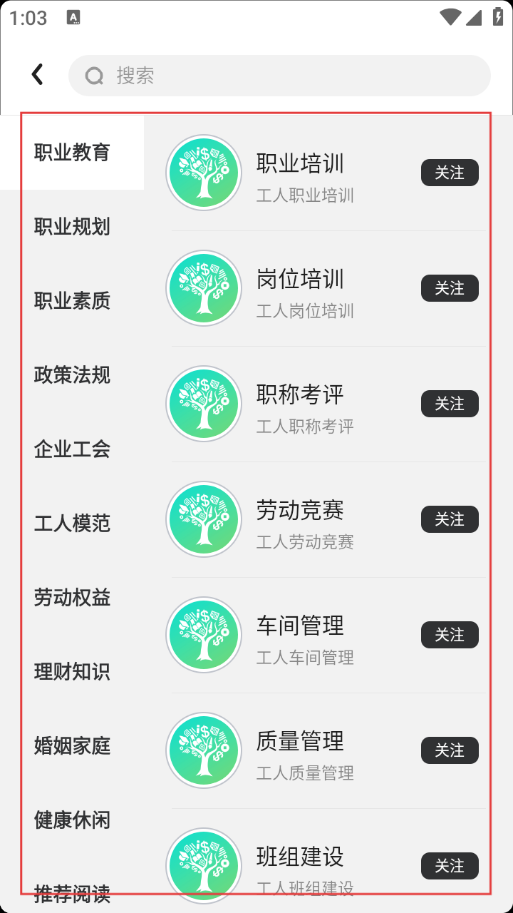 3、在工人知识库分类中,选择感兴趣的类别,如【职称考评】,点击进入该类别页面。