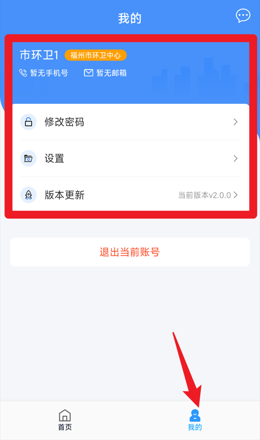 4、进入【我的】页面,可修改密码、进行设置和版本更新,支持退出当前账号。