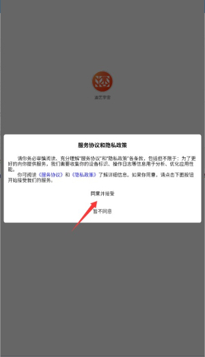 1、初次启动应用时,需阅读并同意用户服务协议及隐私条款,点击确认后进入主界面。