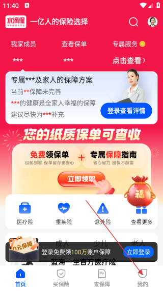 3、家庭保障中心:支持添加10位家庭成员,智能分析家庭整体风险状况,提供家庭保障方案优化建议,统一管理全家的保单和缴费日期。