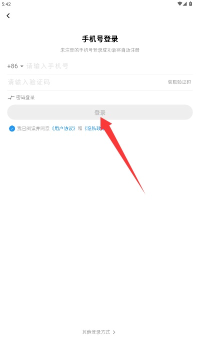 1、在登录界面输入手机号和短信验证码,勾选同意相关协议后点击登录按钮进入。