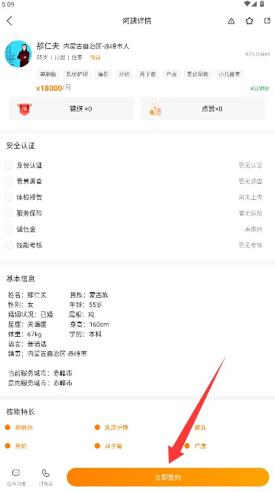 3、在线预约确认服务流程:选择心仪的阿姨后直接在线预约,确认服务时间、地点和具体内容要求。