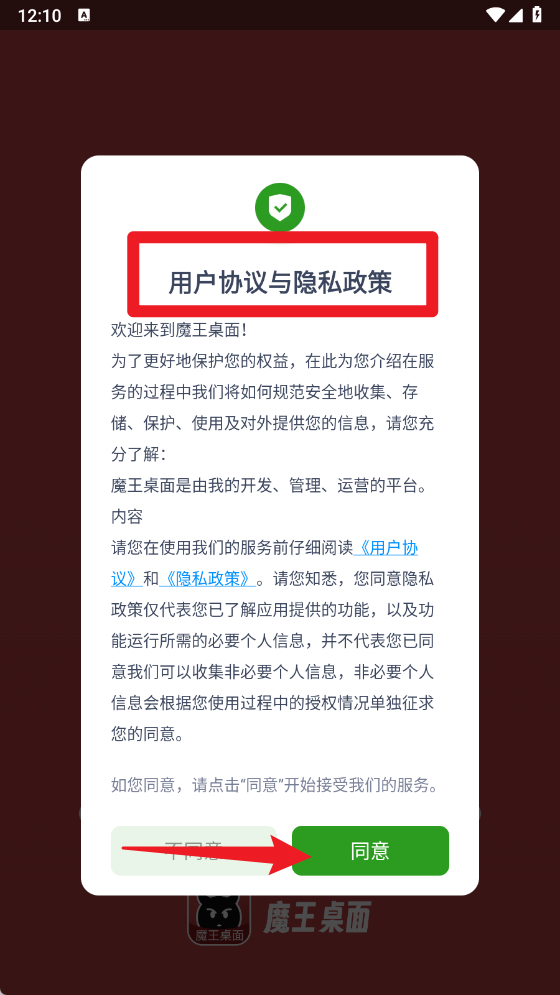 1、首次使用时,请仔细阅读《用户协议》和《隐私政策》,点击“同意”即可进入主界面。