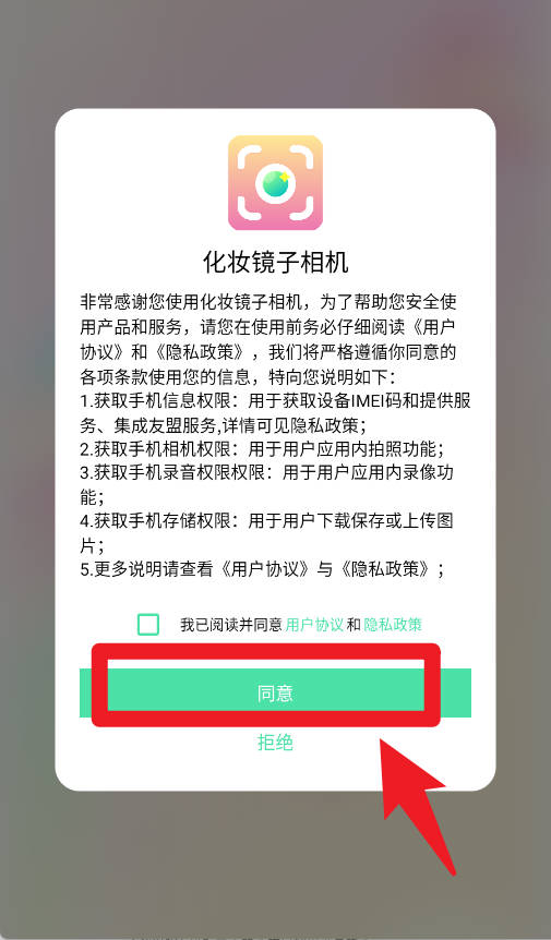 1、首次进入时需同意用户协议与隐私政策,开启相机和存储权限后才能正常使用全部功能。