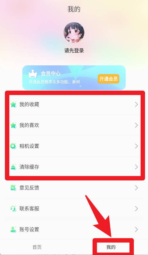 5、我的页面包含收藏、喜欢、相机设置等个性化选项,方便用户管理个人资料与使用习惯。