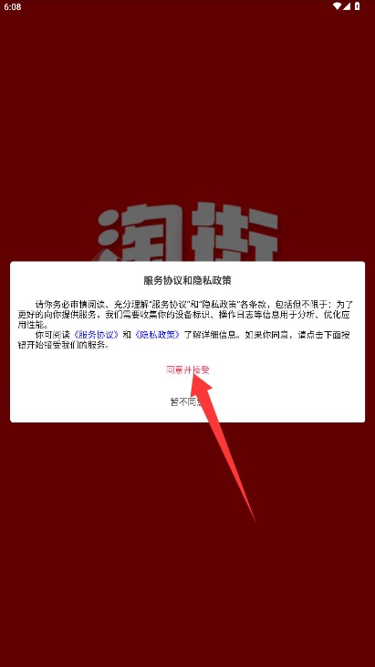 1、初次使用需阅读服务协议与隐私政策,确认无误后点击同意并接受按钮进入。